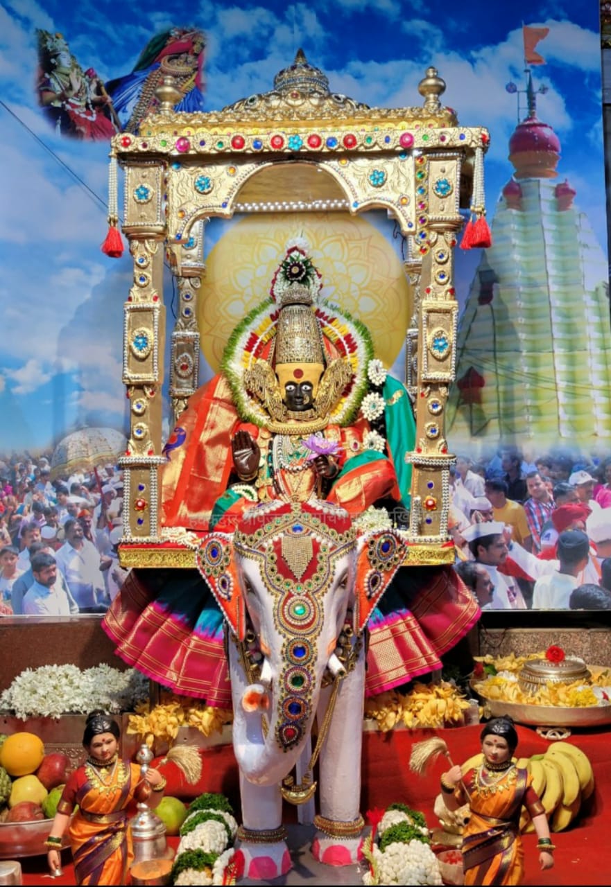 Puja is performed at 8.30 am , 11.30 am Abhishek and daily rituals are performed. After the abhishek shalu (Mahavastra) is offered to goddess, the shalu is gift from Shree Tirumala Tirupati, Venkateshwara Devstan, Andhra Pradesh. At 5 pm Goddess Ambabai’s procession visits Dasara Chowk, where traditional puja is performed by Chatrapati after which the procession is back at the temple. At 9.30 p.m. mandir pradakshana is carried out where devotes take darshan at Garud Mandap. The days ritual ends at 10.30 pm. With one canon salute.