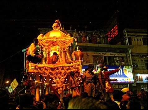 Puja is performed at 8.30 am and 11.30 am abhishek and daily rituals are performed. After the abhishek. Between 7 to 9.30 pm devotees are allowed to take darshan. One canon salute is given to start the nagar pradakshana.